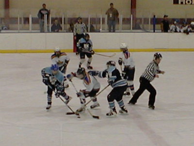 Then, when talking to the Bantam 2 coaches at Whitestown one night, we saw that they could use an extra player at that level. Anthony and I asked if they would like us to propose that he skate up one level, and the board said that he could, if he passed the tryout. He then had a tryout at a PeeWee practice one night, and it was determined that he could skate up with the Bantam 2 team.
