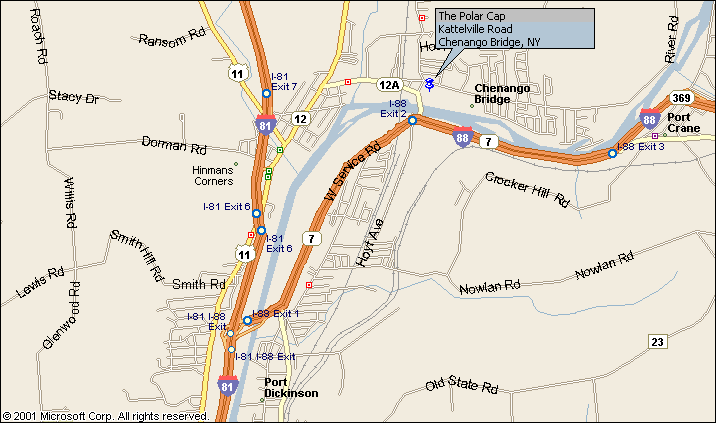Exit 7, Chenango Bridge. Take NY 11 south for about 1/2 mile.