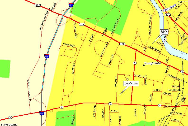 Take NY 69 West from Utica to Parish. Take I-81 North to Watertown, Exit 45 to hotel, Exit 46 to rink.